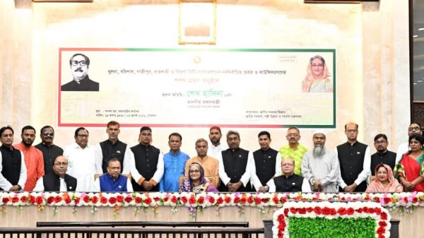 রাজশাহী: রাজশাহী সিটি কর্পোরেশনের পুনরায় নির্বাচিত মেয়র এ.এইচ.এম খায়রুজ্জামান লিটন শপথ নিয়েছেন। সোমবার (৩ জুলাই) প্রধানমন্ত্রী শেখ হাসিনা তাঁর কার্যালয়ের শাপলা হলে এক অনুষ্ঠানে রাসিক মেয়রকে শপথ পাঠ করান। পরে