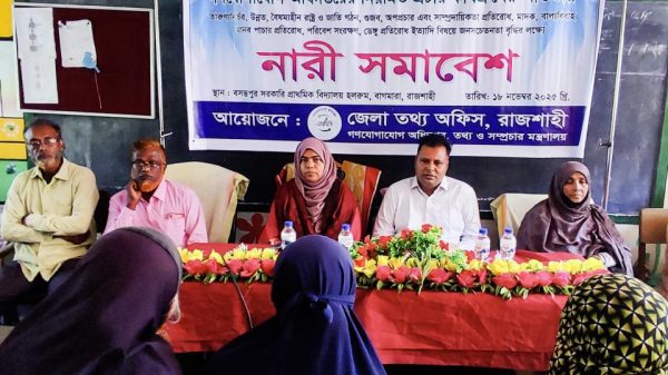 মাসুদ রানা রাব্বানী, রাজশাহী: রাজশাহীর বাগমারা উপজেলার শুভডাঙ্গা ইউনিয়নের বসন্তপুর সরকারি প্রাথমিক বিদ্যালয়ে নারী সমাবেশ অনুষ্ঠিত হয়েছে। মঙ্গলবার (১৮ নভেম্বর) রাজশাহী জেলা তথ্য অফিস এ সমাবেশের আয়োজন করে। অনুষ্ঠানে বাগমারা