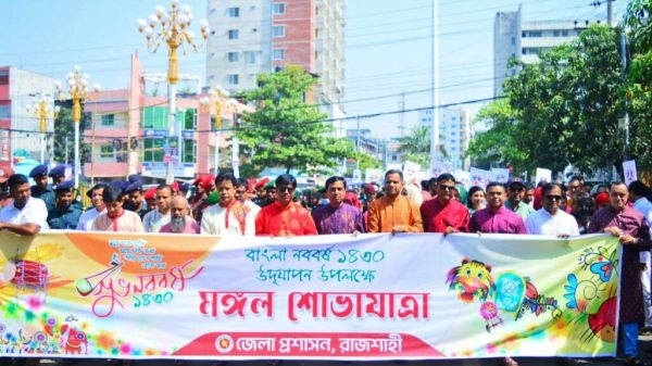 মাসুদ রানা রাব্বানী, রাজশাহী: রাজশাহী জেলা প্রশাসনের আয়োজনে মঙ্গল শোভাযাত্রা ও বর্ষবরণ উৎসব উদযাপিত হয়েছে। শুক্রবার (১৪ এপ্রিল) সকালে জেলা শিশু একাডেমি প্রাঙ্গণে অনুষ্ঠিত হয়ে গেল বাংলা নতুন বছর বরণের