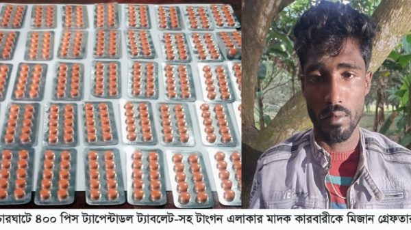 মাসুদ রানা রাব্বানী, রাজশাহী: রাজশাহীর চারঘাটে বিপুল পরিমান ট্যাপেন্টাডল ট্যাবলেট-সহ মিজান (২৪), নামের এক মাদক কারবারীকে গ্রেফতার করেছে র্যাব। বৃহস্পতিবার (১৩ নভেম্বর) বিকাল সাড়ে ৫টায় চারঘাট থানাধীন হলিদাগাছী বাজার এলাকা