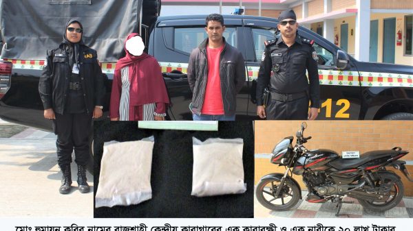 রাতুল সরকার, রাজশাহী: ২০ লাখ টাকার হেরোইনসহ রাজশাহী কেন্দ্রীয় কারাগারের কারারক্ষী মোঃ হুমায়ুন কবিরকে নামের এক মাদক কারবারিকে সিরাজগঞ্জে গ্রেফতার করেছে র্যাব-১২, এর সদস্যরা। একই সাথে সানিজদা বেগম নামের তার