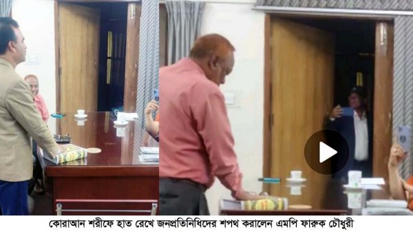 রাতুল সরকার, রাজশাহী: নিজের পক্ষে রাখতে জনপ্রতিনিধিদের কোরাআন শরীফে হাত রেখে শপথ করালেন এমপি ওমর ফারুক চৌধুরী। শনিবার রাতে জাতীয় সংসদ ভবনের নিজের কার্যালয়ে রাজশাহী-১ (গোদাগাড়ী তানোর) আসনের সংসদ ওমর