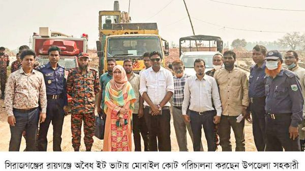 সিরাজগঞ্জ জেলা প্রতিনিধি: সিরাজগঞ্জের রায়গঞ্জে পরিবেশ অধিদপ্তরের ছাড়পত্র না থাকায় অবৈধ ইটভাটায় ভ্রাম্যমাণ আদালত কর্তৃক একটি ইটভাটা গুড়িয়ে দেয়া সহ মোট ৩ টি ইটভাটায় ১০ লক্ষ টাকা জরিমানা আদায় করা