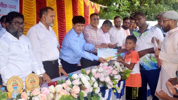 গাবতলী বগুড়া প্রতিনিধি ঃ ২৭শে সেপ্টেম্বর ২০২৫ইং শনিবার বিকালে বগুড়া গাবতলীর সুখানপুকুর সৈয়দ আহম্মেদ কলেজ মাঠে করিম মেম্বার ফাউন্ডেশন এর উদ্যোগে সুখানপুকুরে করিম মেম্বার স্মৃতি ফুটবল টুর্নামেন্টের ফাইনাল খেলায় পুরস্কার