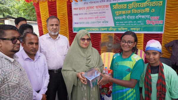 তারুণ্যের উৎসব উপলক্ষ্যে জাতীয় ক্রীড়া পরিদপ্তরের বার্ষিক কর্মসূচী ২০২৫-২৬ এর আওতায় বগুড়া জেলা ক্রীড়া অফিসের উদ্যোগে মাসব্যাপী সাঁতার প্রশিক্ষণের উদ্বোধন হয়েছে। বুধবার দুপুরে জেলা সুইমিংপুলে প্রশিক্ষণের উদ্বোধন করেন জেলা প্রশাসক