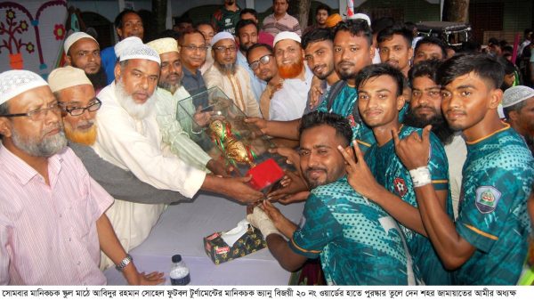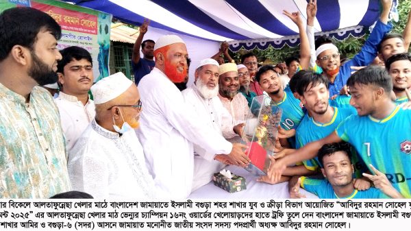 বাংলাদেশ জামায়াতে ইসলামী বগুড়া শহর শাখার যুব ও ক্রীড়া বিভাগ আয়োজিত “আবিদুর রহমান সোহেল ফুটবল টুর্ণামেন্ট ২০২৫” এর আলতাফুন্নেছা খেলার মাঠ ভেন্যুর চ্যাম্পিয়ন হয়েছে ১৬নং ওয়ার্ড। শুক্রবার আলতাফুন্নেছা খেলার মাঠে