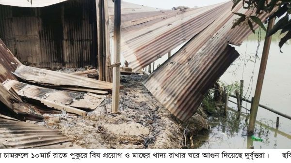 দুপচাঁচিয়া(বগুড়া)প্রতিনিধিঃ দুপচাঁচিয়া উপজেলার চামরুল ইউনিয়নের ঘাটমাগুরা এলাকায় কাজল প্রামানিকের লীজকৃত পুকুরে বিষ প্রয়োগ করেছে দুর্বৃত্তরা। এসময় তারা পুকুর পাড়ে অবস্থিত মাছের খাদ্য রাখার ঘরে আগুন লাগিয়ে দেয়। গত ১০মার্চ মঙ্গলবার