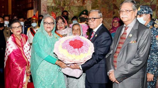 বঙ্গভবনে রাষ্ট্রপতি আবদুল হামিদের সঙ্গে সৌজন্য সাক্ষাৎ করেছেন নবনির্বাচিত রাষ্ট্রপতি মো. সাহাবুদ্দিন। এ সময় তার সঙ্গে ছিলেন প্রধানমন্ত্রী শেখ হাসিনা ও তার ছোট বোন শেখ রেহানা। মঙ্গলবার রাতে এ সাক্ষাৎ