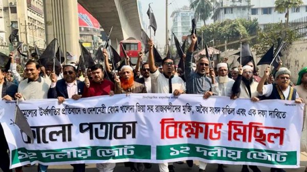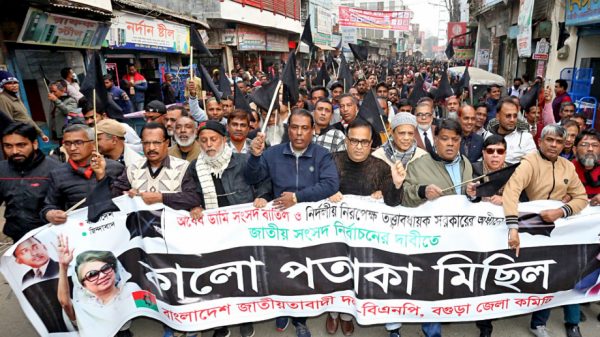 ডামি নির্বাচনের সংসদ বাতিল, দ্রব্যমূল্যের ঊর্ধ্বগতির প্রতিবাদ, বিএনপি চেয়ারপারসন বেগম খালেদা জিয়াসহ সকল রাজবন্দীদের মুক্তির দাবিতে আগামী মঙ্গলবারও (৩০ জানুয়ারি) কালো পতাকা মিছিল করবে বিএনপি। আজ শনিবার বিকেলে নয়া পল্টন