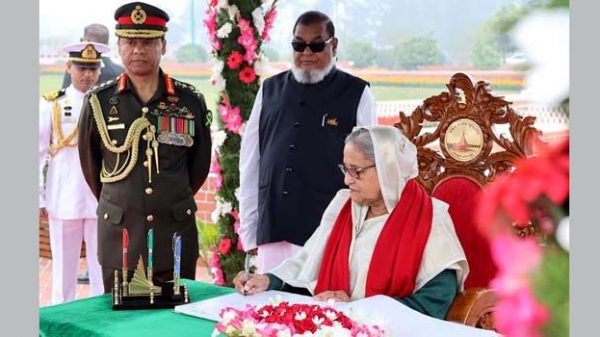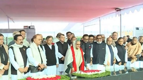 প্রধানমন্ত্রী শেখ হাসিনার নেতৃত্বে ধানমন্ডিতে জাতির পিতা বঙ্গবন্ধু শেখ মুজিবুর রহমানের প্রতিকৃতিতে শ্রদ্ধা নিবেদন করছেন নতুন মন্ত্রিসভার সদস্যরা। আজ শুক্রবার ১২ জানুয়ারি সকাল ১০ টায় প্রধানমন্ত্রী শেখ হাসিনার নেতৃত্বে মন্ত্রিসভার