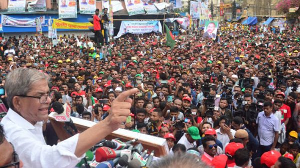 সরকারকে চ্যালেঞ্জ করে বিএনপি মহাসচিব মির্জা ফখরুল ইসলাম আলমগীর বলেছেন, নির্দলীয় নিরপেক্ষ সরকারের অধীনে নির্বাচন দিন। দেখেন জনগণ আপনাদের কী করে। এ সময় তিনি বলেন, ‘আমরা সবাই মুক্তিযুদ্ধ করে এ
